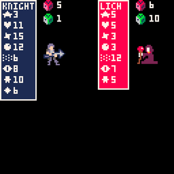 This is just a simple prototype of me testing out dice rolls in live combat. You can press or hold the X key to speed through the combat which will cycle through multiple heroes and monsters. It has a win and lose so you got about a 40/60 shot of winning.